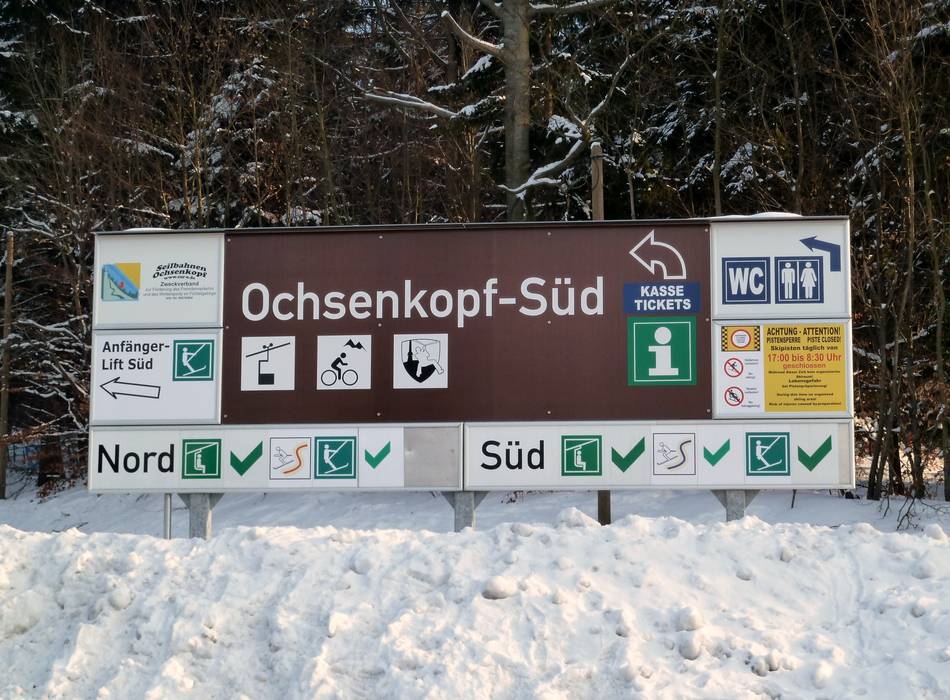 Orientierung (Pistenplan, Informationstafeln, Ausschilderung) und Sicherheit im Skigebiet Ochsenkopf