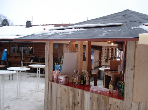 Die gemütliche Ödbergalm an der Talstation bietet durchgehend warme Küche und von der Sonnenterrasse kann man die Piste sehr gut beobachten.
