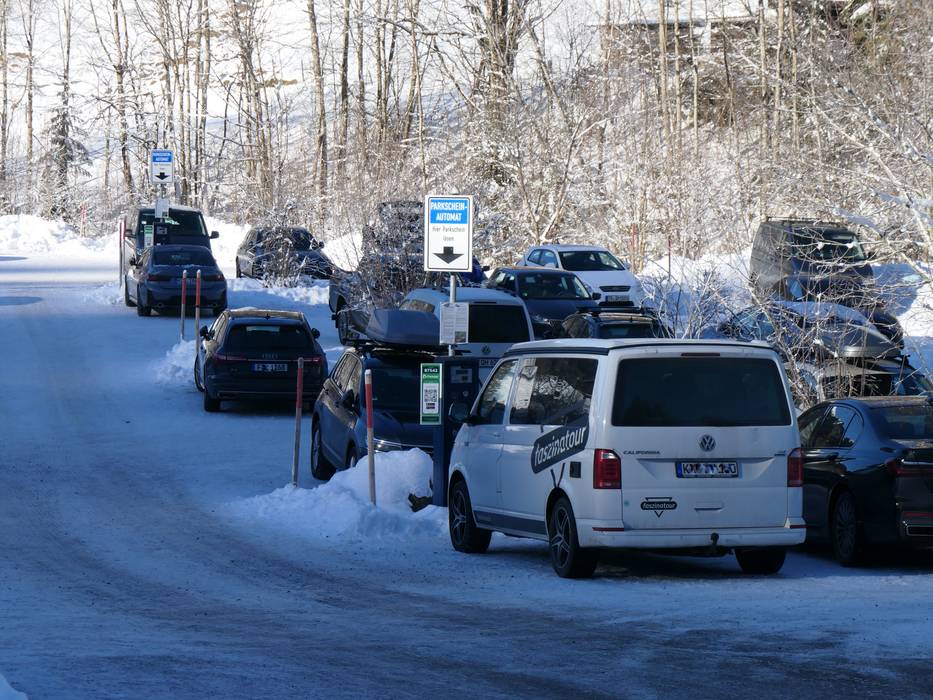 Parkplätze: meist ausreichend vorhanden, asphaltierter Platz, Kiesplatz, kostenpflichtig
