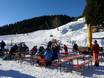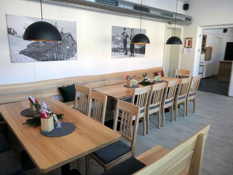 Die Leitenbach Hütte ist aufgrund der Nähe zum Übungslift bei Familien sehr beliebt. Die Stube ist sehr gemütlich und die Sonnenterrasse beliebt. Nach dem Skifahren ist die Hütte ein kleiner Après-Ski-Treff.