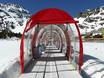 Der Schneegarten ist ein großes Anfängergelände für Kinder mit überdachtem Förderband und Kinderkarussell.