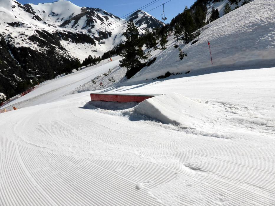 Arcalís bietet einen Snowpark und einen kleinen Woodpark mit natürlichen und künstlichen Modulen.