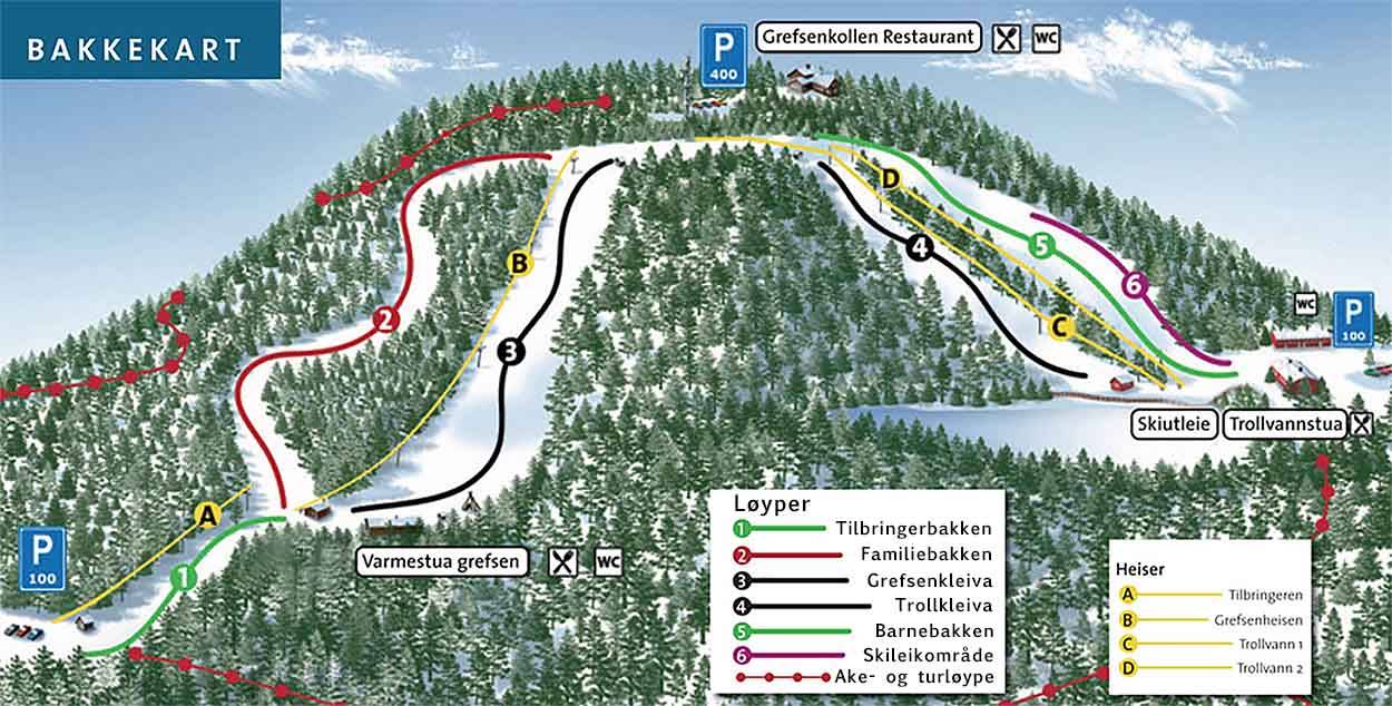 Pistenplan Oslo Skisenter Grefsenkollen Saison 2024/2025