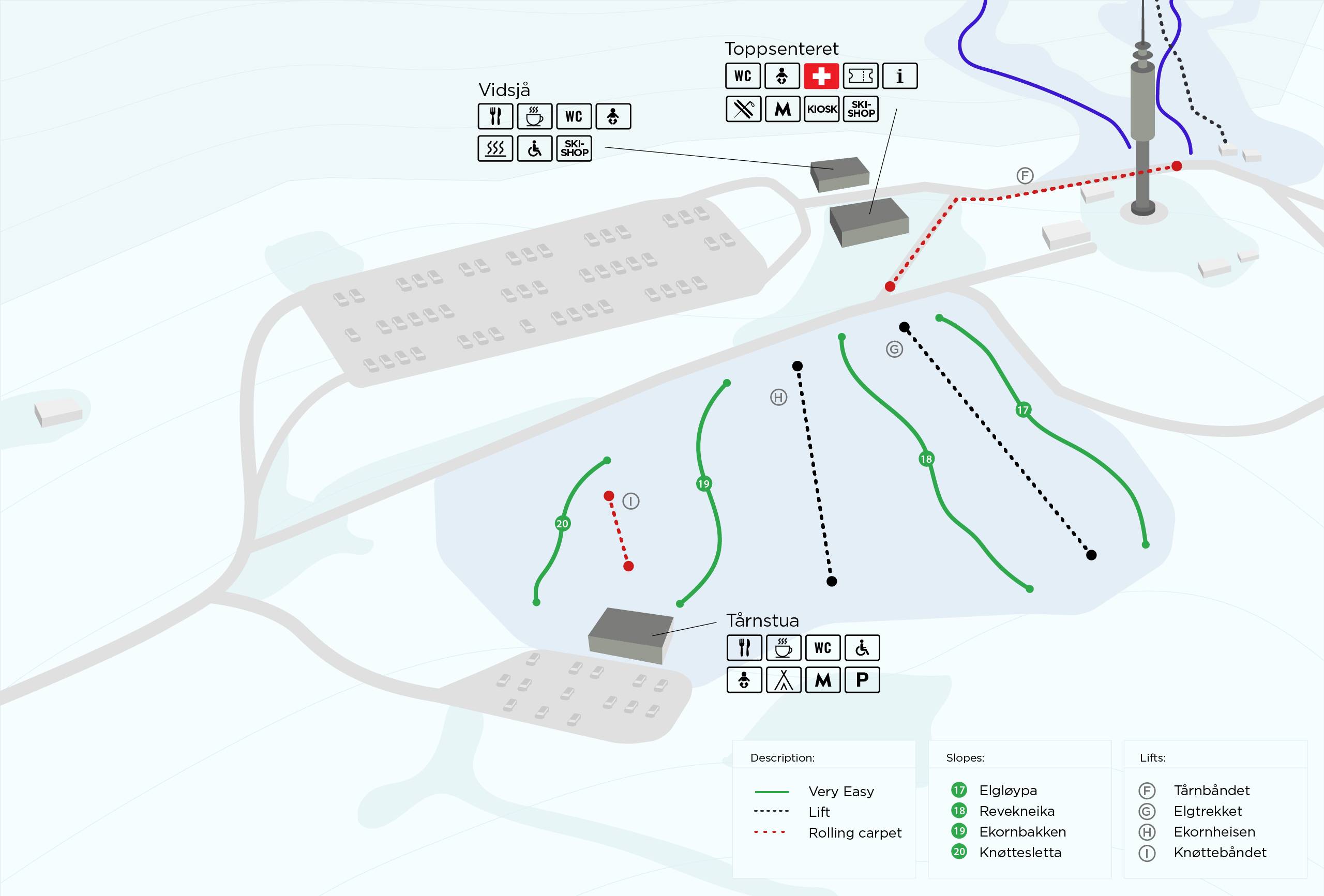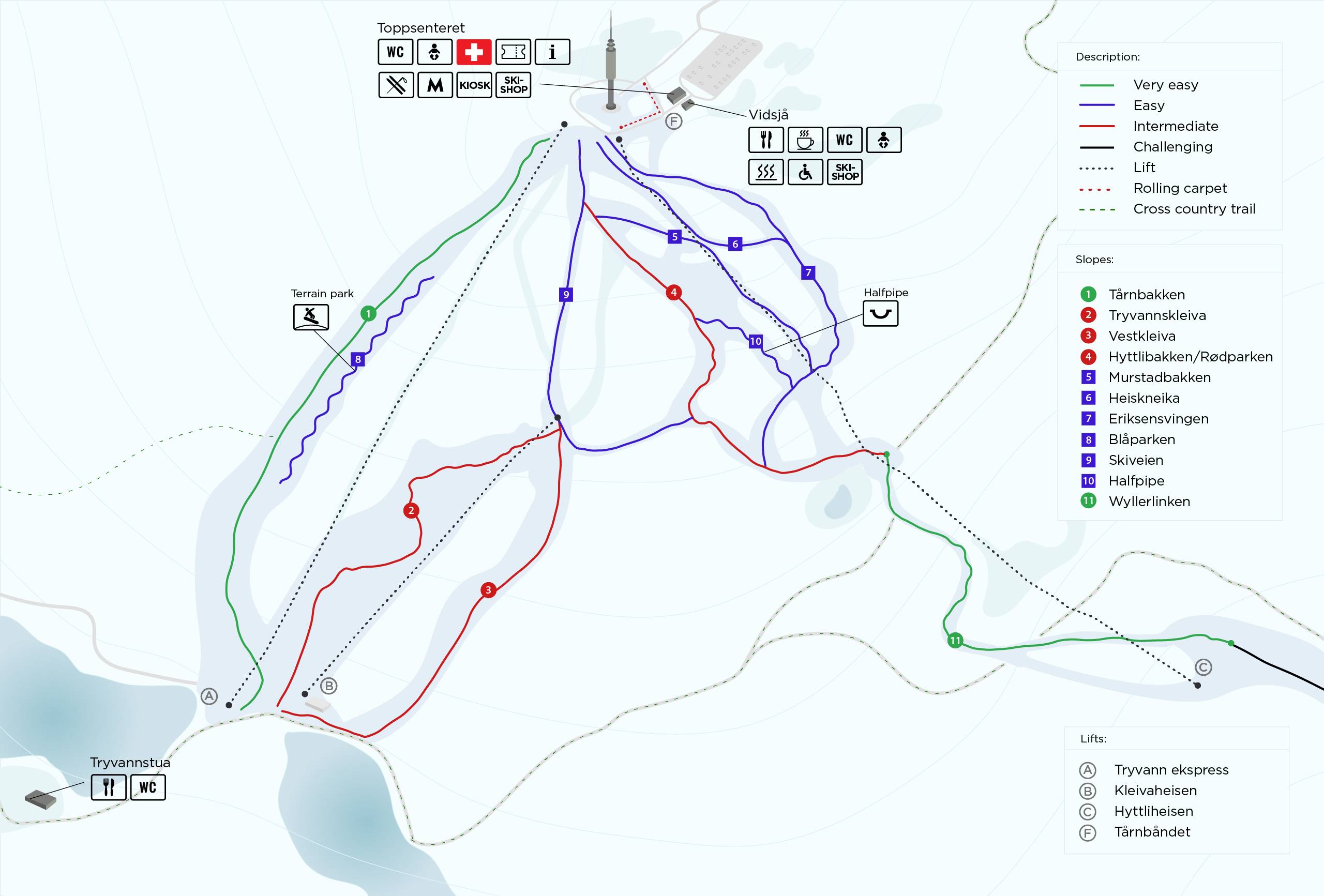 Orientierung (Pistenplan, Informationstafeln, Ausschilderung) und Sicherheit im Skigebiet Oslo – Tryvann (Skimore)