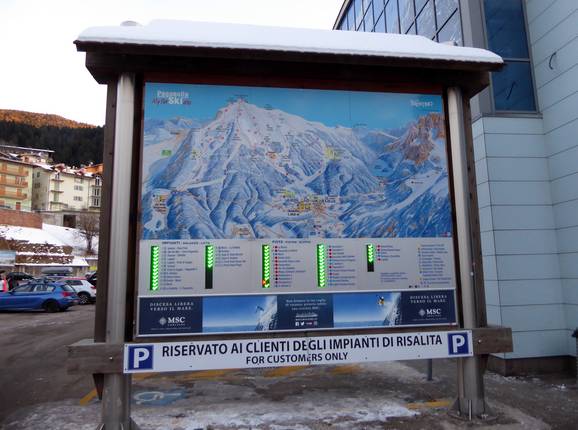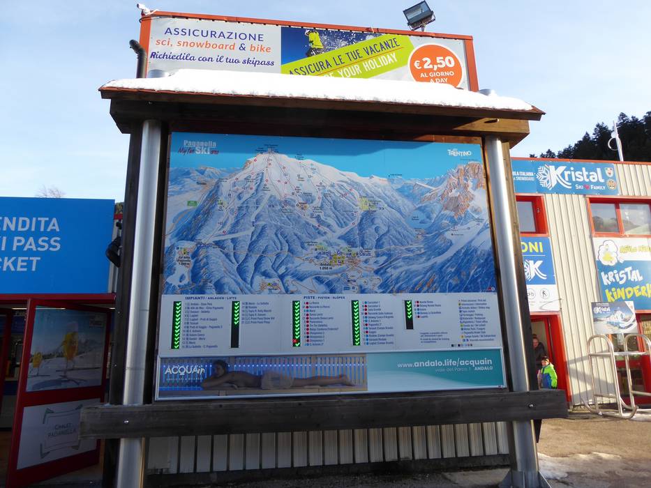 Orientierung (Pistenplan, Informationstafeln, Ausschilderung) und Sicherheit im Skigebiet Paganella – Andalo