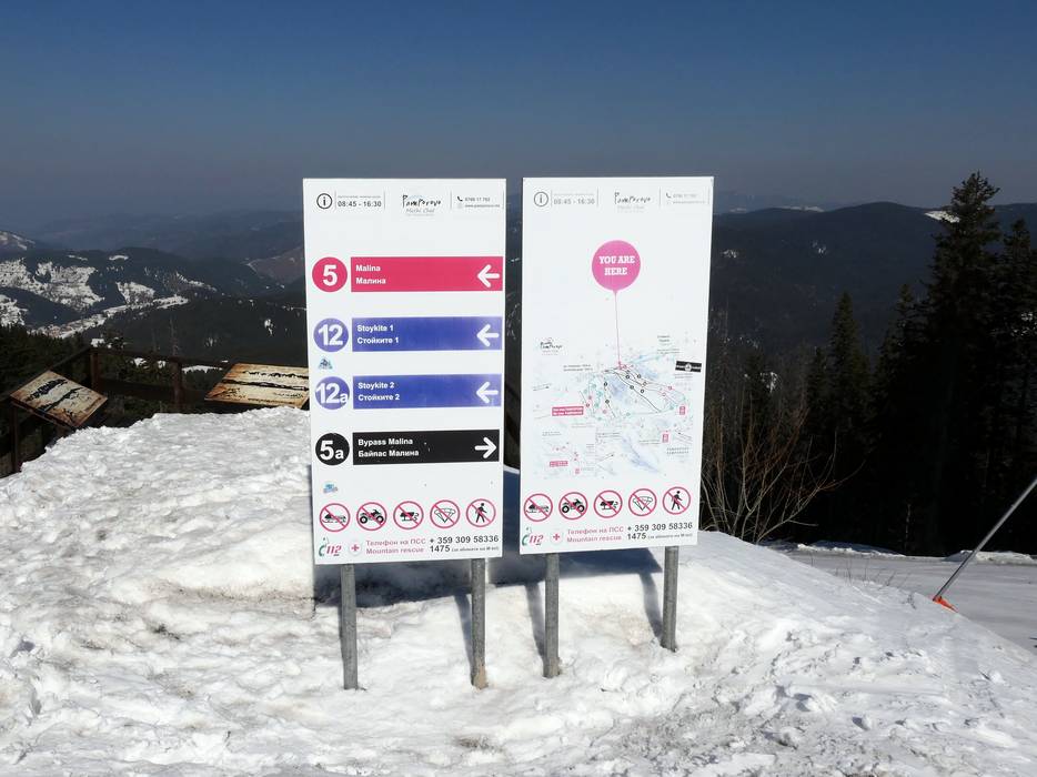 Orientierung (Pistenplan, Informationstafeln, Ausschilderung) und Sicherheit im Skigebiet Pamporovo