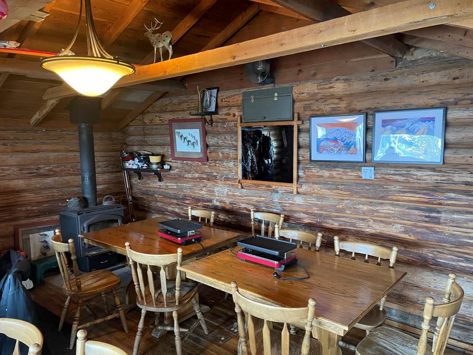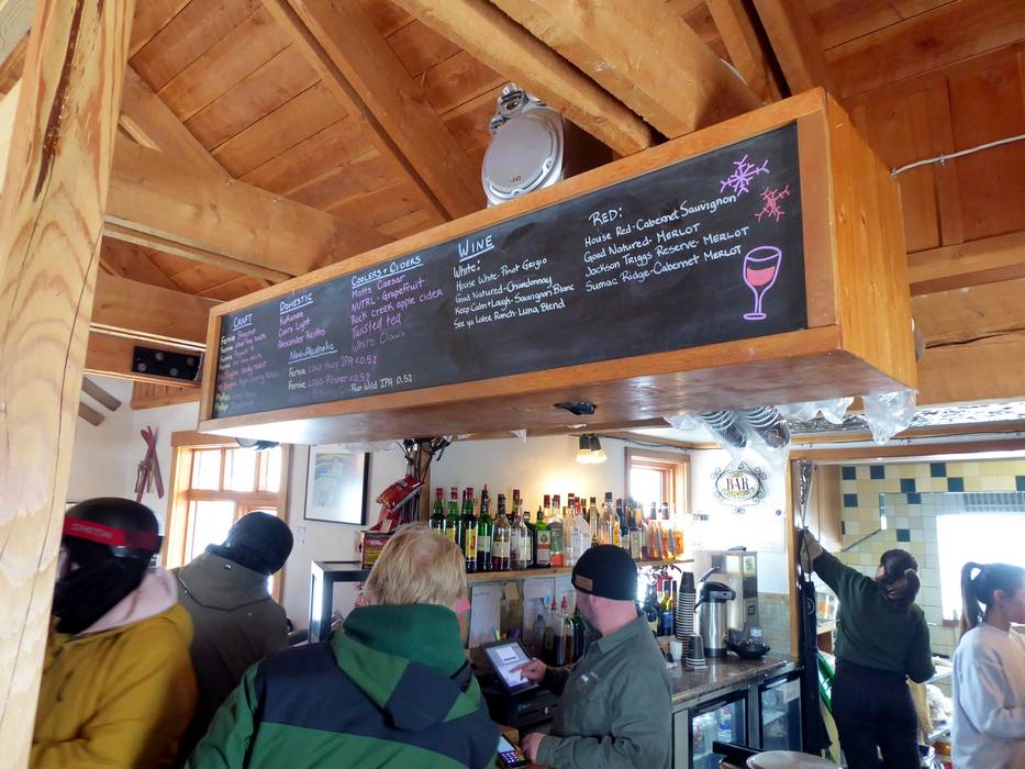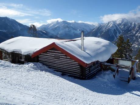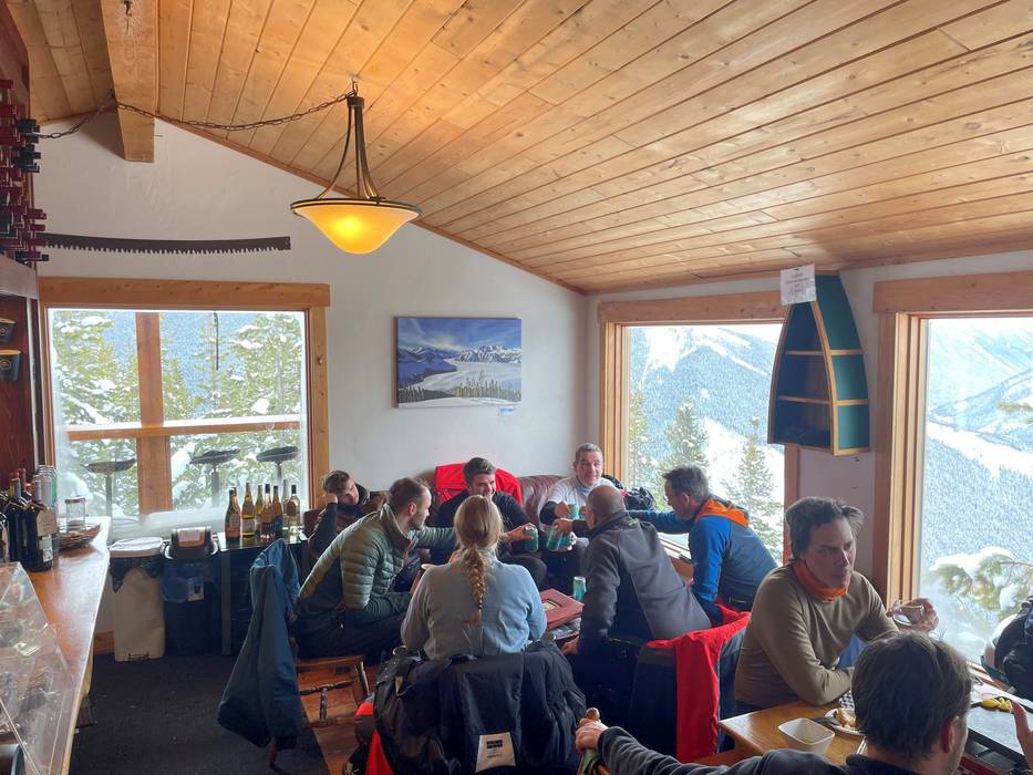 Die urige Elkhorn Cabin bietet einen herrlichen Blick auf die Bergwelt und lockt mit Schweizer Käsefondue und Raclette. Es gibt eine besondere Auswahl an Weinen, Craft-Bieren aus British Columbia und einen hausgemachten Glühwein. Man sollte unbedingt vorher reservieren.