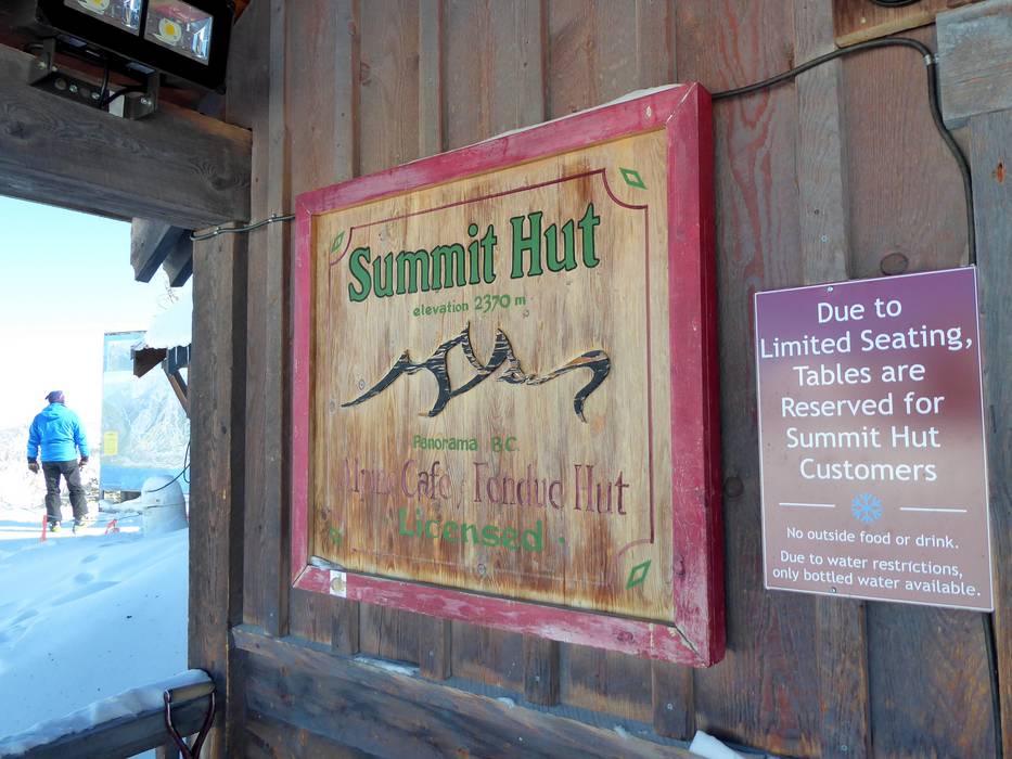 Die Summit Hut ist eine urige Hütte am Gipfel des Skigebiets von Panorama. Am Kamin kann man sich aufwärmen, bevor man sich die schweren Pisten der Taynton Bowl hinabstürzt. Bei schönem Wetter gibt es eine kleine Sonnenterrasse und man kann das herrliche Panorama genießen.
