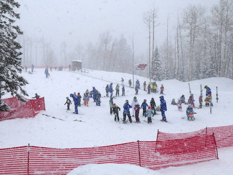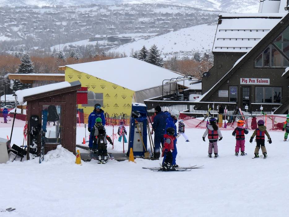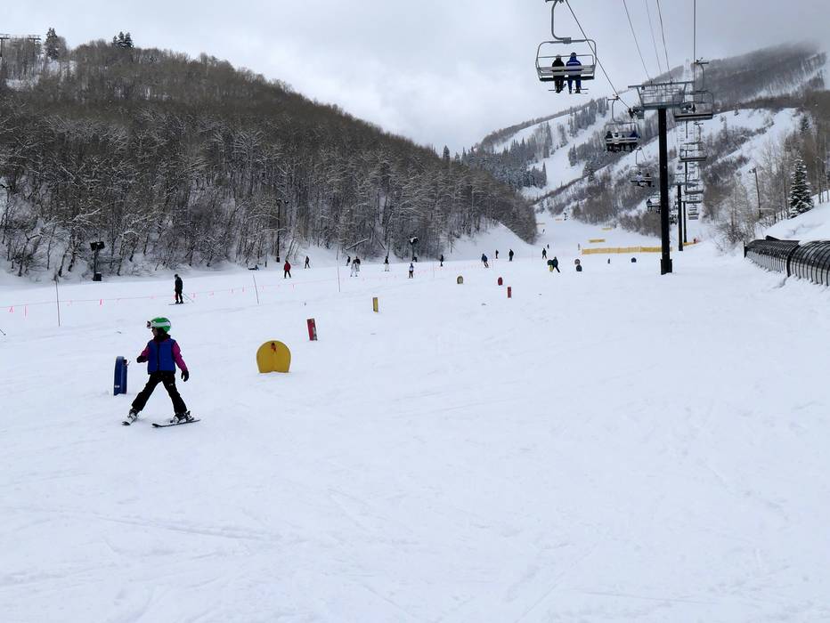 Kinder können an den Zauberteppichen im Park City Mountain Village ideal üben. Skikurse werden hier auch angeboten.