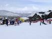 An der Bergstation der Red Pine Gondola befindet sich ein Skischulgelände mit Zauberteppich.