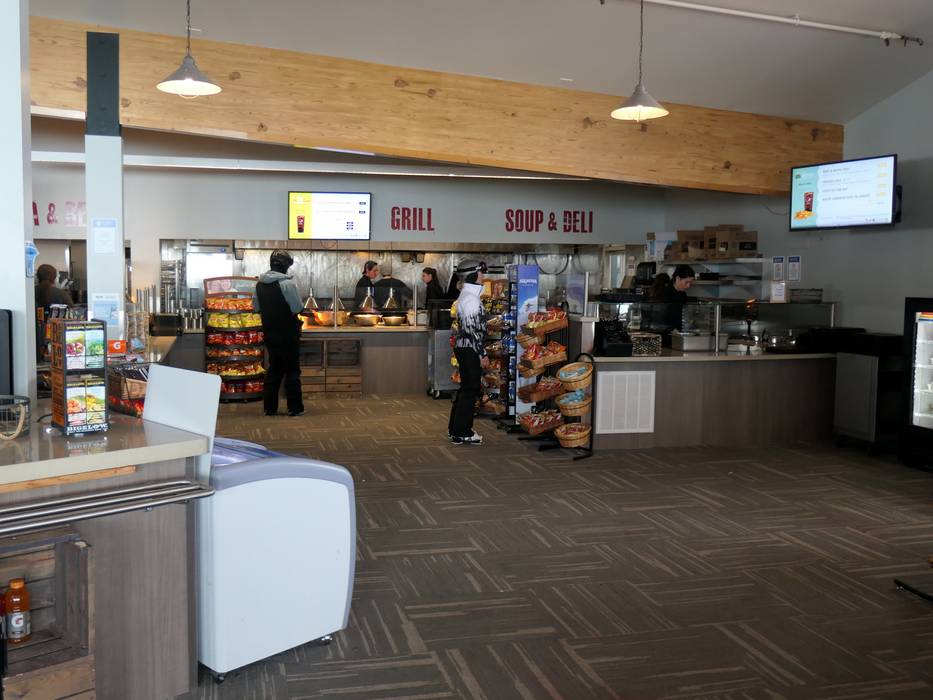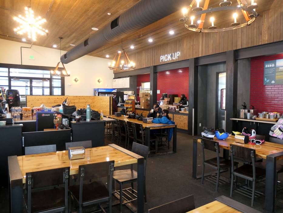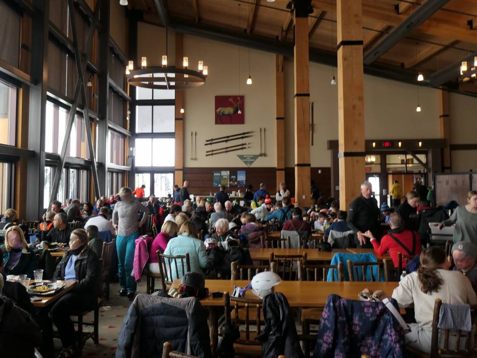 Die Red Pine Lodge ist ein großes Selbstbedienungsrestaurant mitten im Skigebiet.