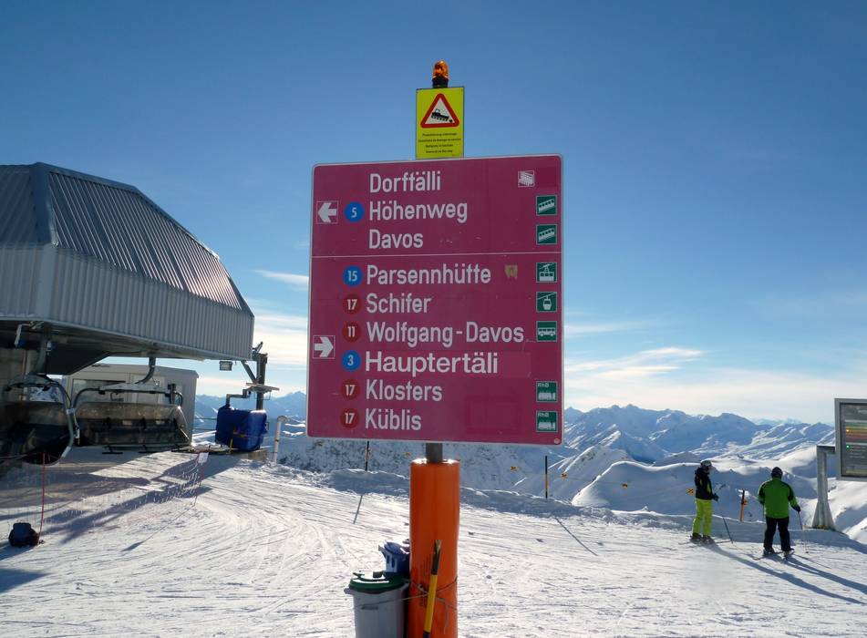 Orientierung (Pistenplan, Informationstafeln, Ausschilderung) und Sicherheit im Skigebiet Parsenn (Davos Klosters)