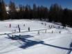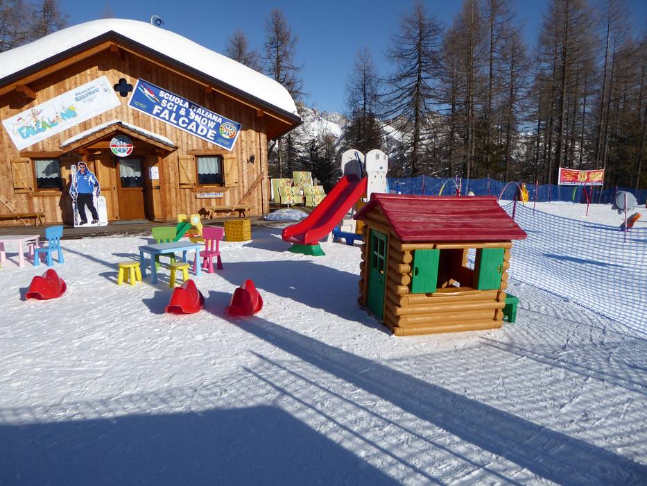 Der Spielplatz und der Zauberteppich liegen direkt an der Bergstation der Gondelbahn von Falcade. Am Zauberteppich können die Kinder das Skifahren lernen. Leichte Pisten und ein Mini Snowpark liegen rund um Le Buse.