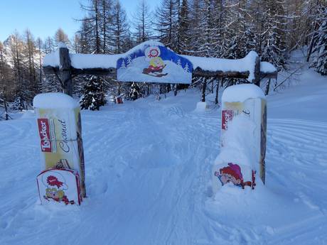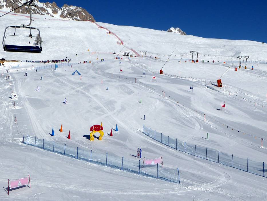 Beim Skilift Capanna Margherita können Kinder am Förderband üben. Eine Hasenpiste und eine Skicrossstrecke mit Kurven und Sprüngen befindet sich hier auch.