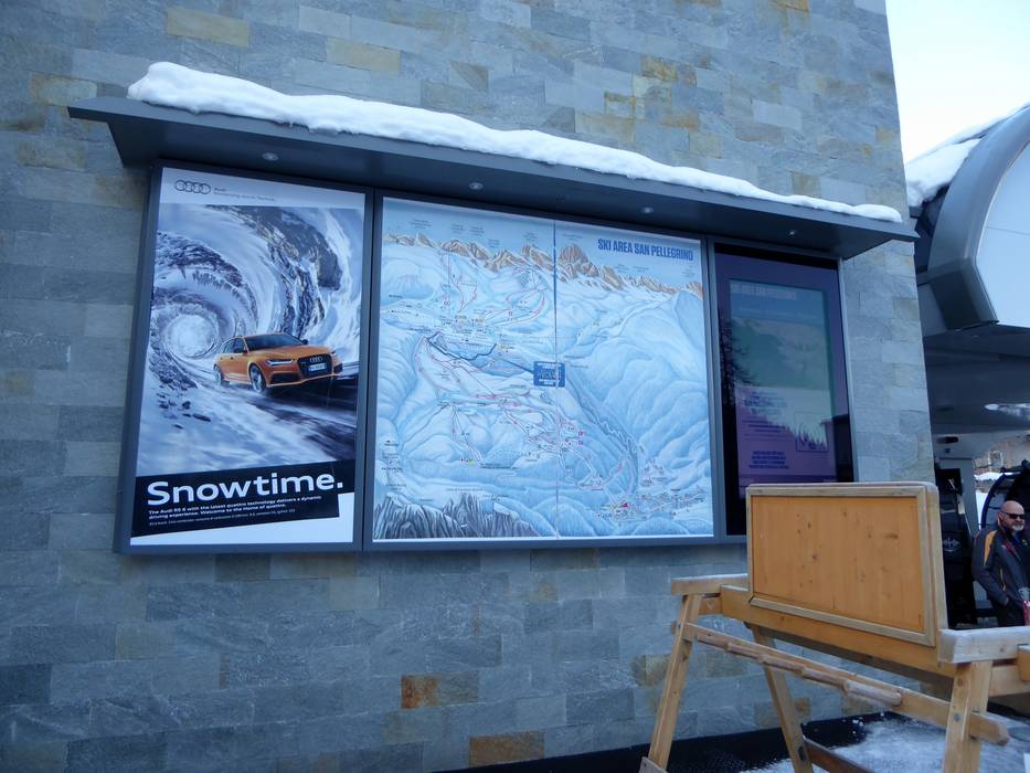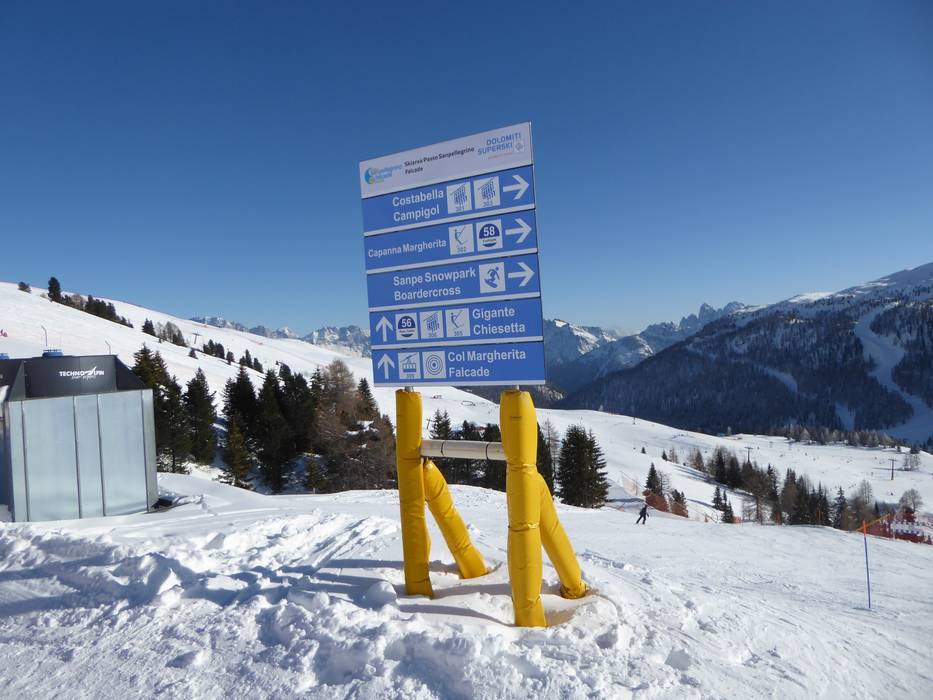 Große Informationstafeln informieren die Gäste. Meist ist auch der aktuelle Betriebsstatus angegeben. Die beiden Orte Passo San Pellegrino und Falcade sind immer gut ausgeschildert. Die Ausschilderungen und Pistenmarkierungen sind deutlich.