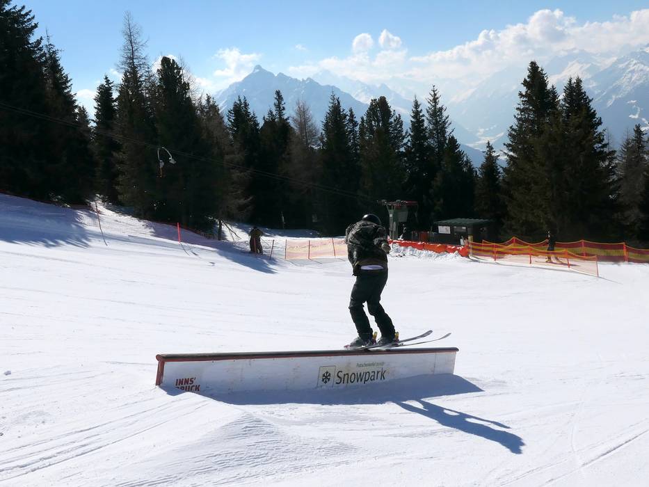 Auf dem sonnigen Gelände über Innsbruck locken einfache Boxen und Tubes sowie viele anspruchsvolle Rail- und Tubelines, teilweise auch kleinere Jumps. Der Snowpark ist in mehrerer Bereiche aufgeteilt. Das Herzstück liegt am Schlepplift „Übungslift“.