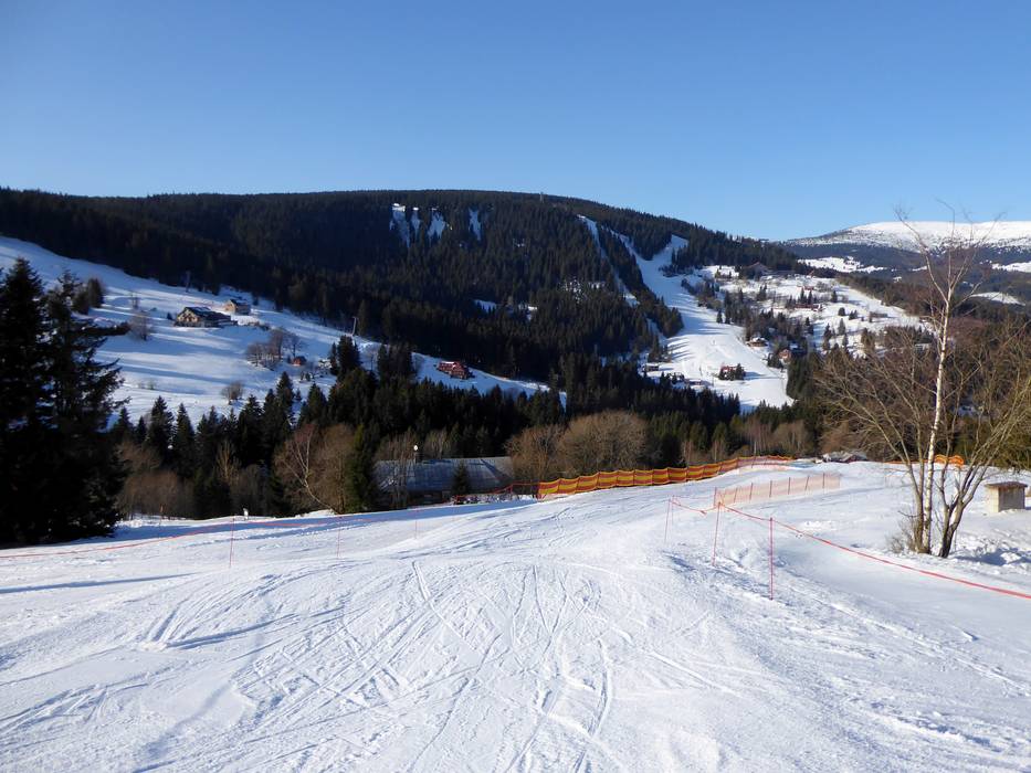 Das Skigebiet Pec pod Sněžkou ist das zweitgrößte Skigebiet in der Ferienregion Černá hora-Pec und ein überschaubares Skigebiet. Es erstreckt sich über die Skigebietsteile Javor, Zahrádky und Hnědý vrch. Mit dem Bus kann man in das Skigebiet Černá hora fahren und die SkiTour mit zwei Pistenraupenfahrten führt die Wintersportler zurück nach Pec pod Sněžkou und somit stehen rund 30 km Pisten zur Verfügung.