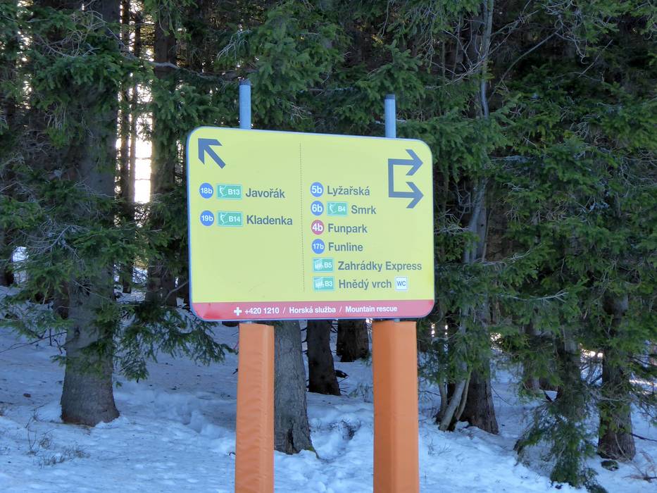 Orientierung (Pistenplan, Informationstafeln, Ausschilderung) und Sicherheit im Skigebiet Pec pod Sněžkou (Petzer)