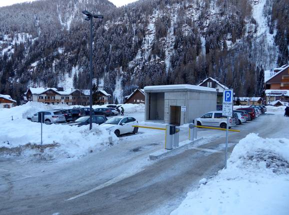 Parkplätze: meist ausreichend vorhanden, Parkhaus, asphaltierter Platz, Kiesplatz, kostenpflichtig