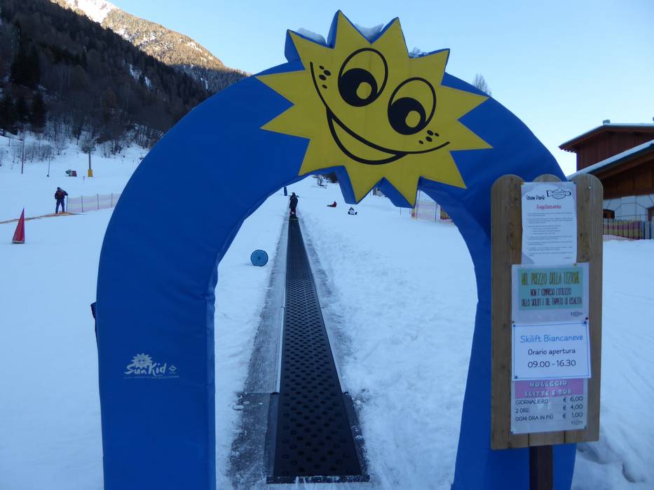 Der Biancaneve Snowpark liegt in Cogolo, etwa 4 km vom eigentlichen Skigebiet Pejo enfernt. Hier gibt es einen Tellerlift und ein Förderband. Fernab von Hektik und Stress können die Kleinen hier im Snowpark spielen, rodeln und sich austoben.
