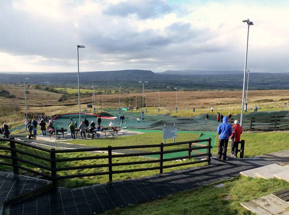 Die Trockenpiste ist gesamt etwa 100m lang. Somit ist das ein kleines Trockenskigebiet.