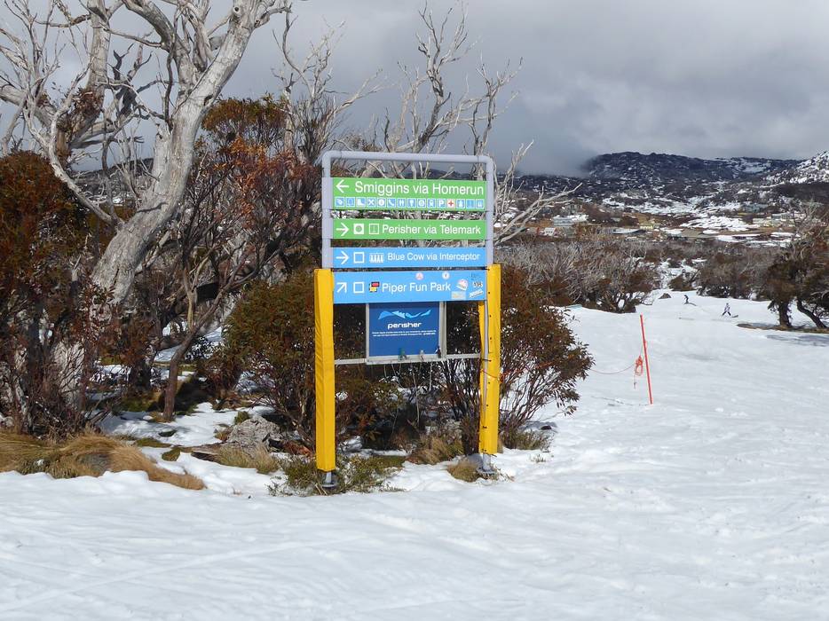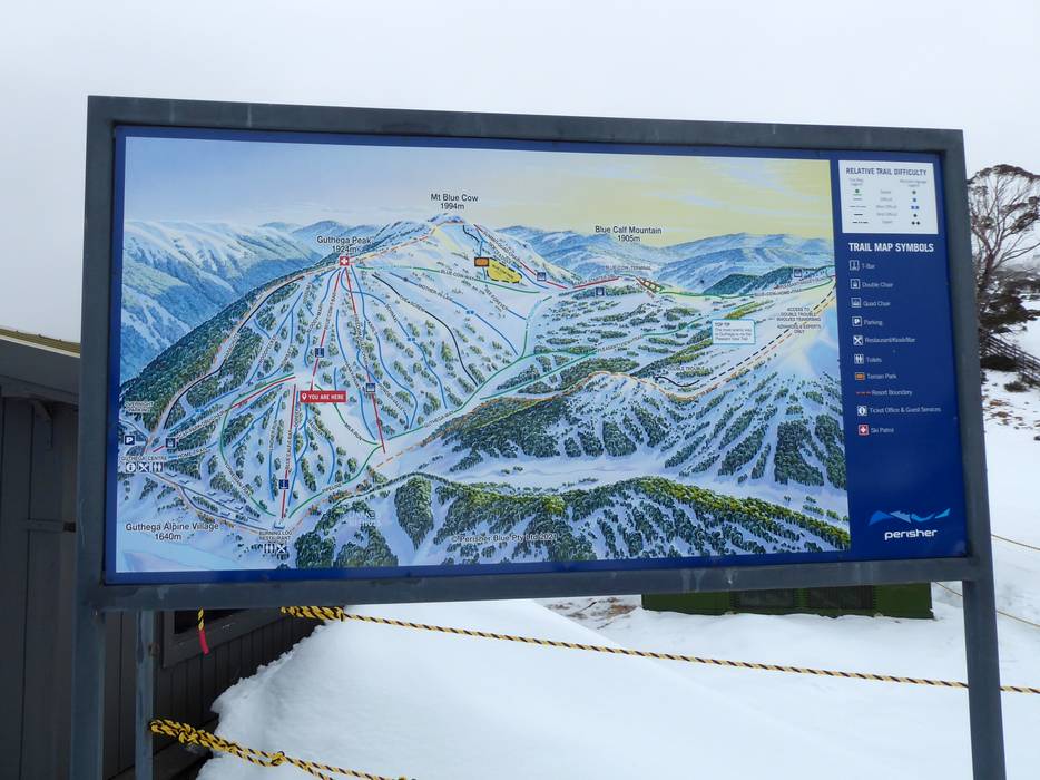 Orientierung (Pistenplan, Informationstafeln, Ausschilderung) und Sicherheit im Skigebiet Perisher