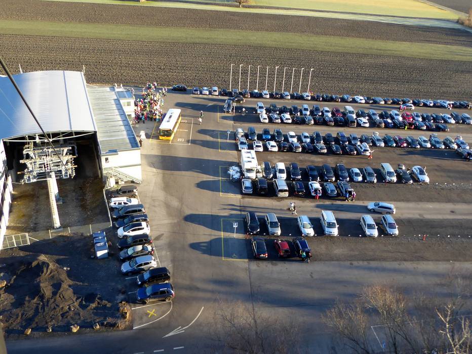 Parkplätze: meist ausreichend vorhanden, asphaltierter Platz, Kiesplatz, kostenpflichtig