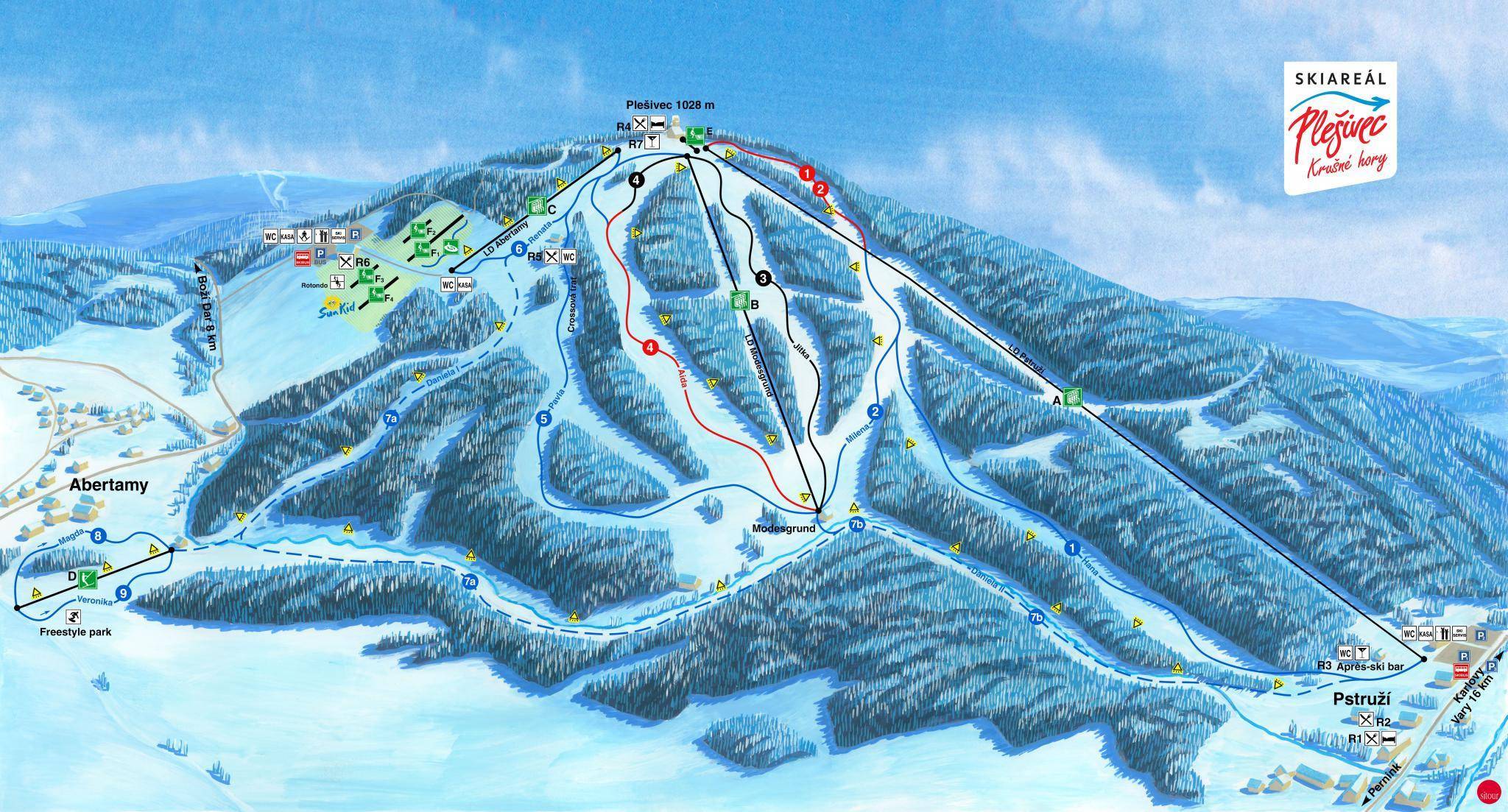 Pistenplan Pleßberg (Plešivec) – Abertamy Saison 2025/2026