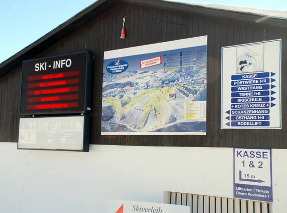 Orientierung (Pistenplan, Informationstafeln, Ausschilderung) und Sicherheit im Skigebiet Postwiesen Skidorf – Neuastenberg
