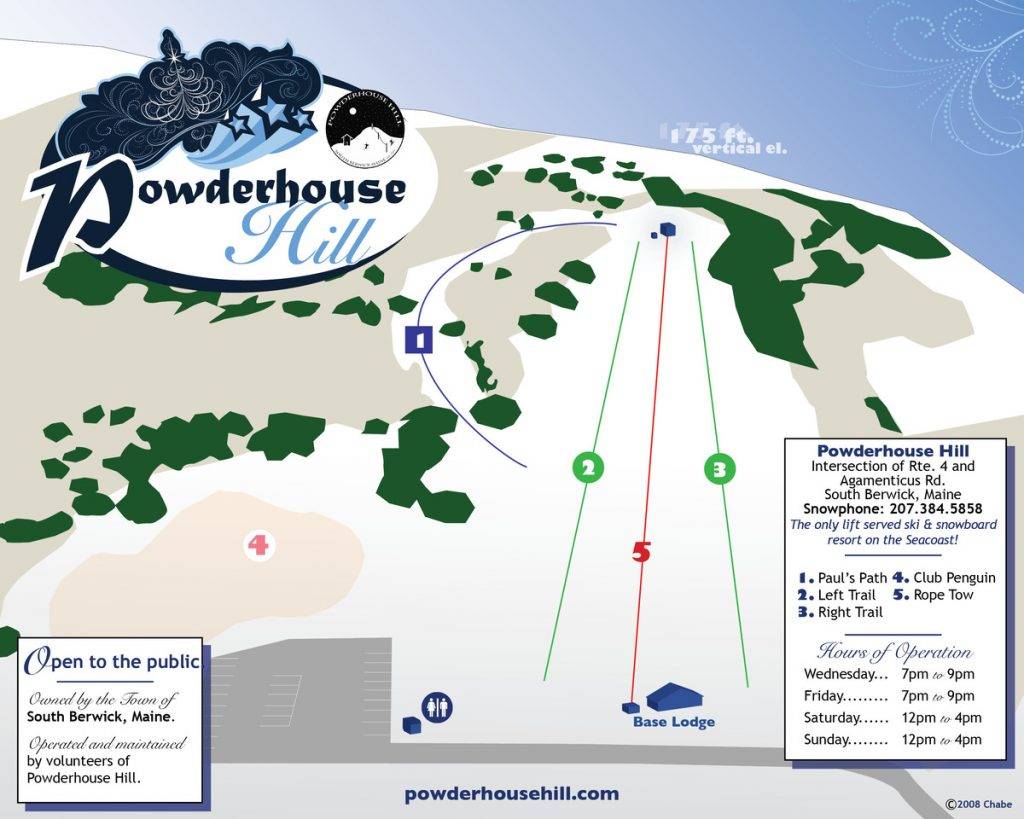 Pistenplan vom Skigebiet Powderhouse Hill – South Berwick