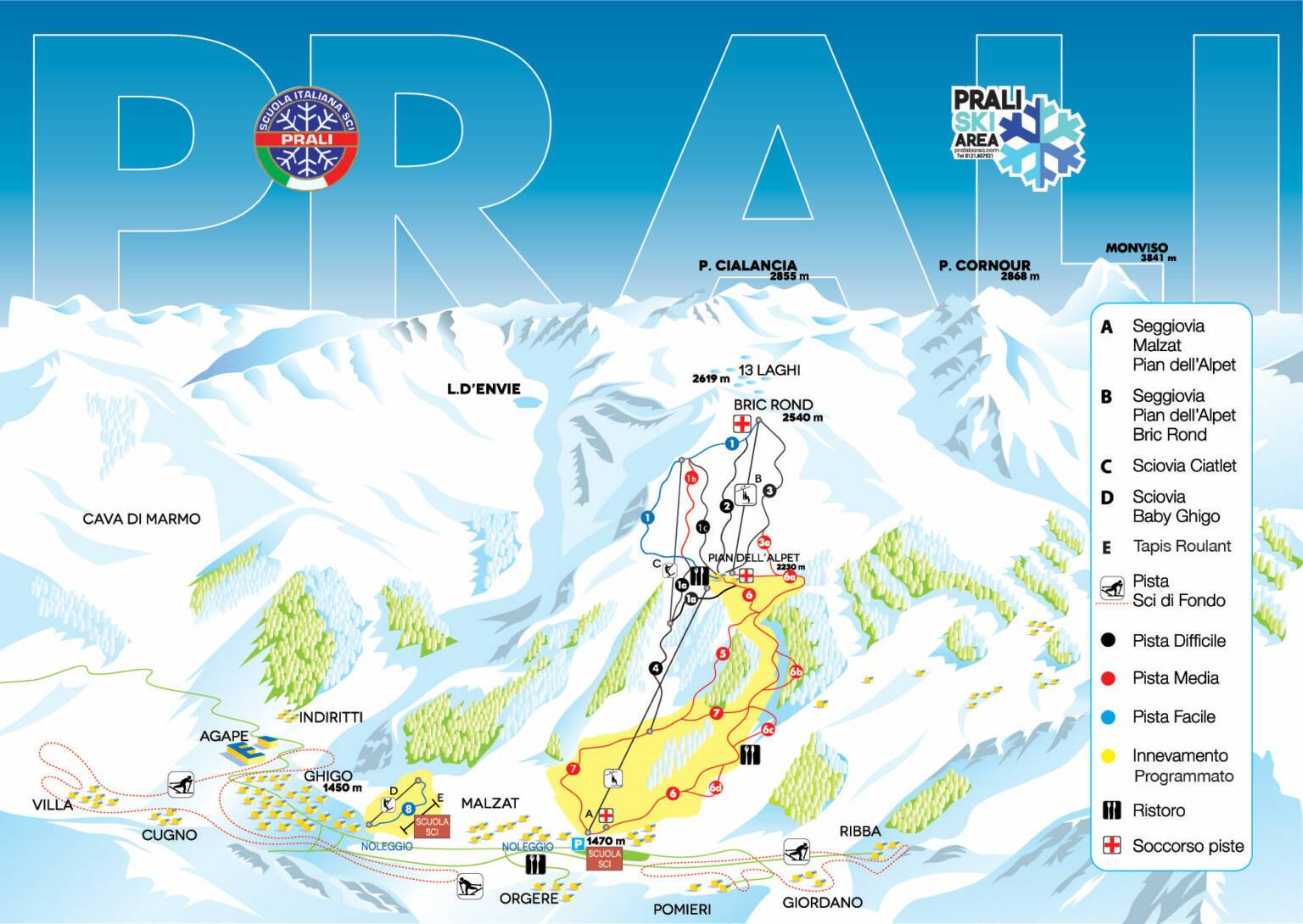 Prali (1 km), Malzat (0,1 km), Ghigo (0,9 km), Orgiere (0,3 km), Giordano Orte am Skigebiet