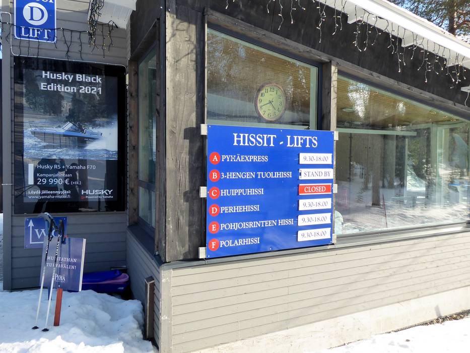 Orientierung (Pistenplan, Informationstafeln, Ausschilderung) und Sicherheit im Skigebiet Pyhä