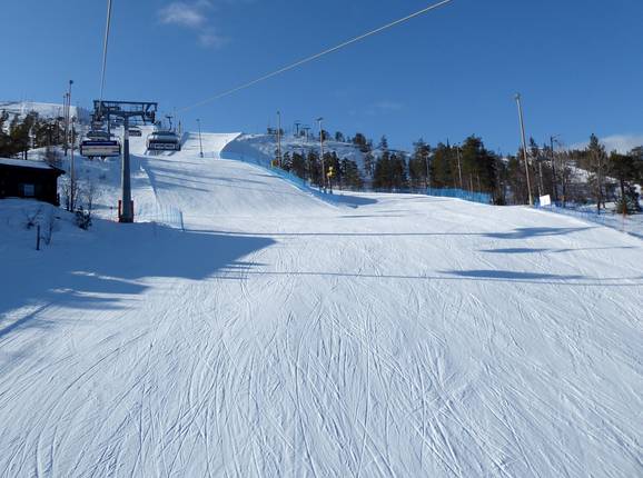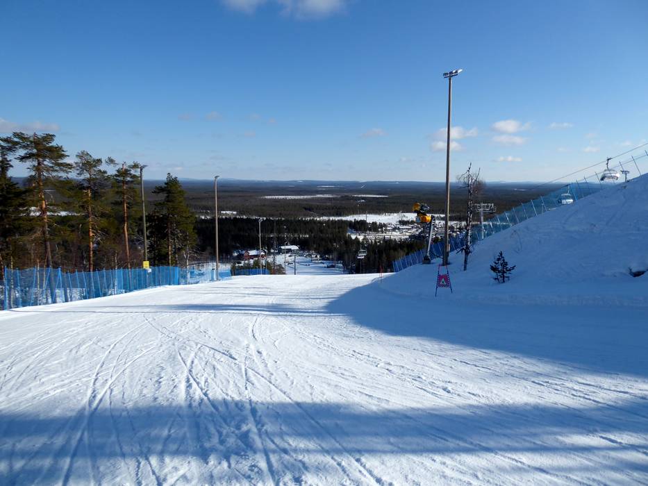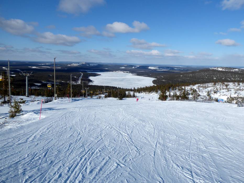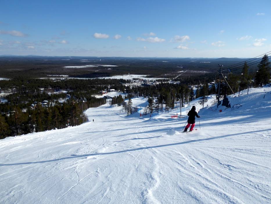 Das Skigebiet Pyhä bietet eine gute Mischung von leichten, mittelschweren und schweren Pisten. Es gibt hier sogar die steilste Piste Finnlands. An der 6er-Sesselbahn kann man sogar aus fünf verschiedenen Pisten von leicht bis schwer wählen. Während dem Skifahren und Snowboarden hat man ein herrliches Panorama über Lappland und die zugefrorenen Seen. Nachdem es während der Wintermonate kaum hell wird, können ein Großteil der Pisten beleuchtet werden.