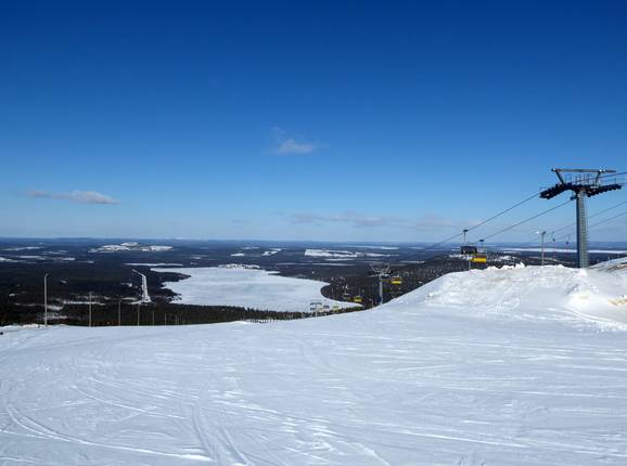 Blick vom Gipfel zum Pyhäjärvi-See Top of Pyhä: Photopoint am Gipfel von Pyhä Top of Pyhä: 360°-Aussichtsplattform mit Blick… Mittelschwere Nordabfahrt im Skigebiet Pyhä