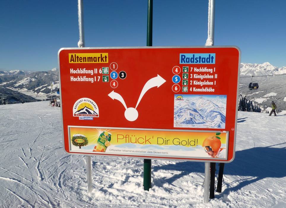 Orientierung (Pistenplan, Informationstafeln, Ausschilderung) und Sicherheit im Skigebiet Radstadt/Altenmarkt