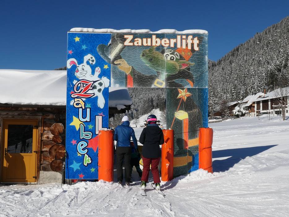 An der Talstation des Bergkristalllifts befindet sich Kalis Zwergennest der WM Schischule Royer. Es gibt hier neben einem Förderband auch einen Übungslift. Ein idealer Bereich um die ersten Schwünge sicher zu lernen.
