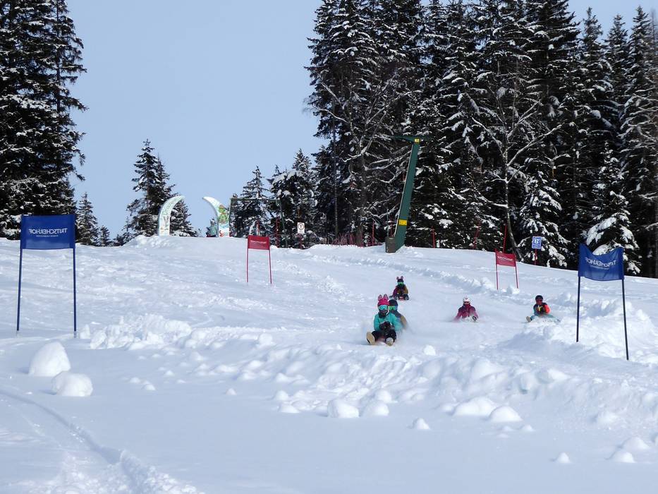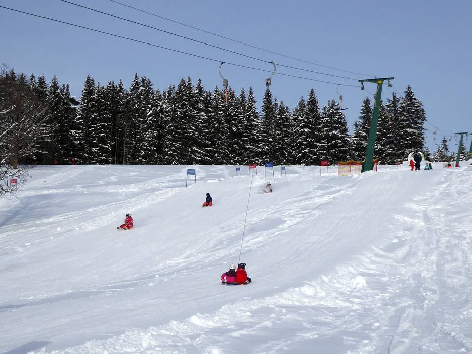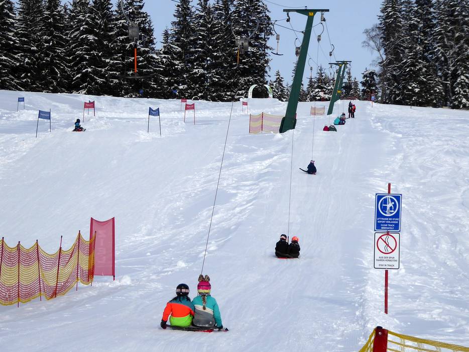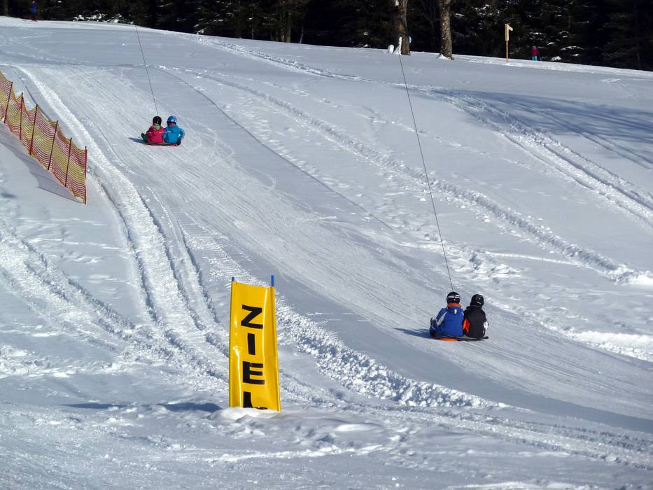 An den Drachenliften kann man sich mit den Zipfelbob nach oben ziehen lassen und dann die Pisten hinabsausen. Ein Spaß für Jung und Alt.