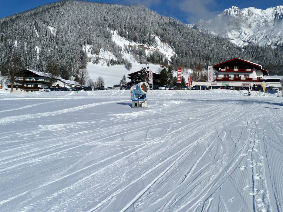 Die meisten Abfahrten im Skigebiet von Ramsau am Dachstein können beschneit werden. Ramsau liegt auf einem sonnigen Plateau und somit geht die Saison nicht sehr lange im Frühling.