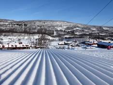 Knapp unterhalb der oberen Station der Fjällgårdsbanan-Sesselbahn auf 910 m