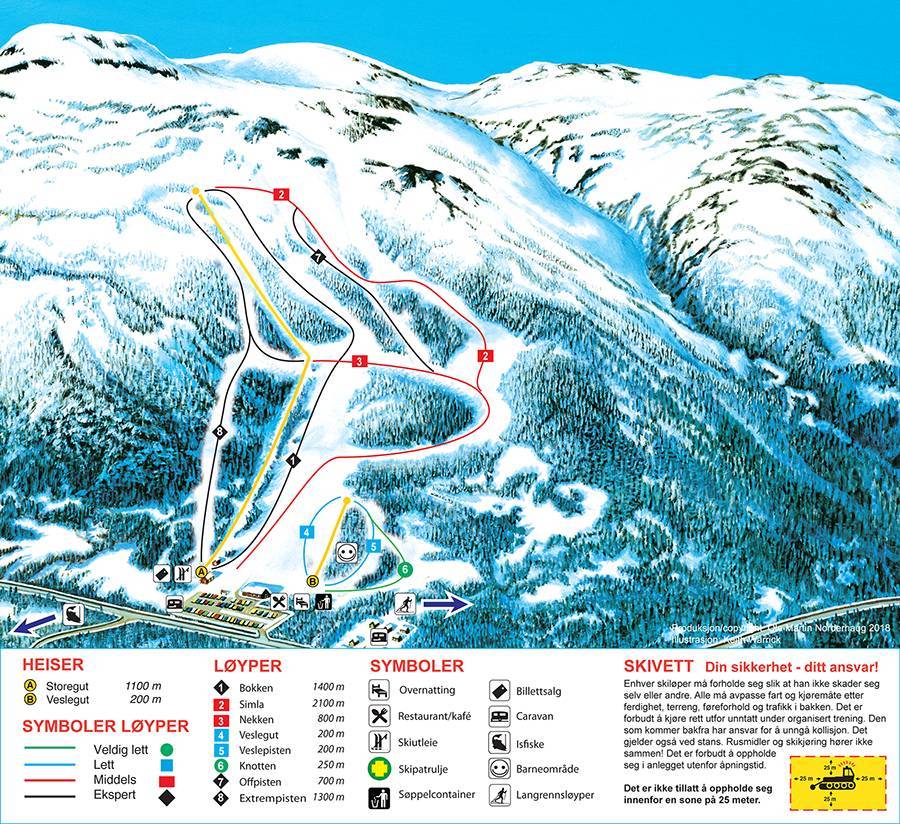 Pistenplan Raulandsfjell Alpinsenter Saison ---- !!! closed/stillgelegt