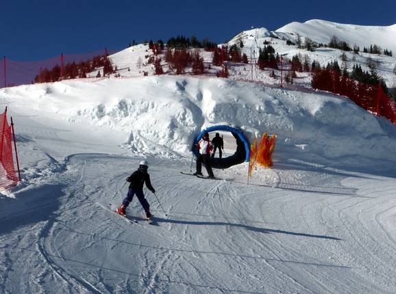 Das großzügige Kinderübungsgelände liegt an der Talstation der Hochalmbahn in Rauris. Es hat einen eigenen Zauberteppich und Seillift. Der Schneehase schaut gerne vorbei und der Skischul-Zug ist ein großer Spaß für die Kinder.