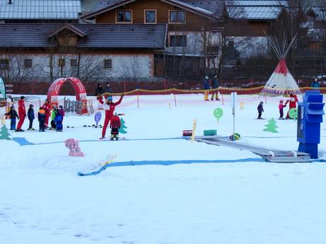 Das Kindergelände an der Talstation der Hochalmbahn in Rauris hat einen Zauberteppich und einen kleinen Übungslift. Kinder können bei den engagierten Skilehrern optimal üben.