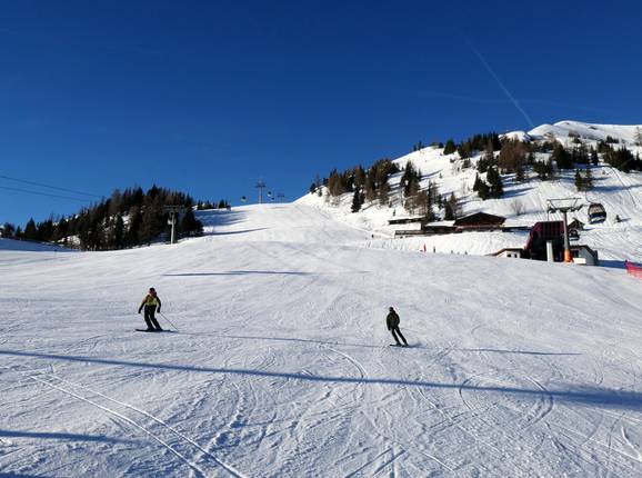 Es gibt eine rote und eine schwarze Talabfahrt. Die schwarze führt zur Talstation der Hochalmbahn, die rote zur Kreuzbodenbahn.