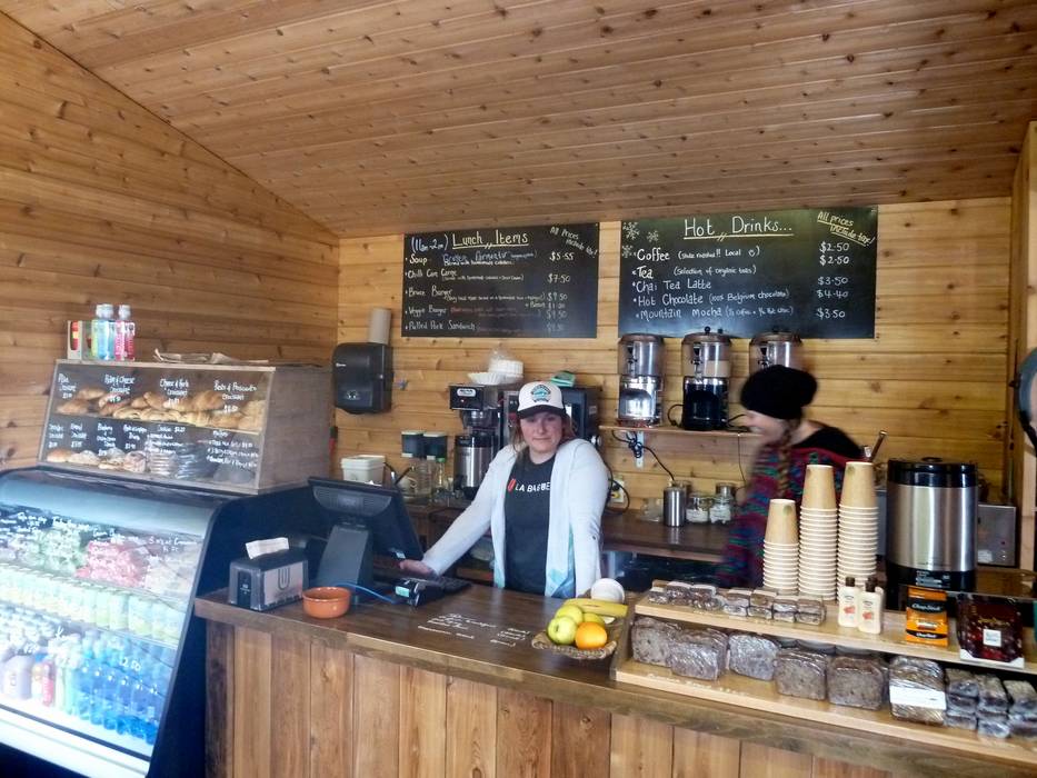 Die Revelation Lodge bietet einen großen Selbstbedienungsbereich und eine gemütliche Espressobar. Bei schönem Wetter wird im Freien gegrillt.