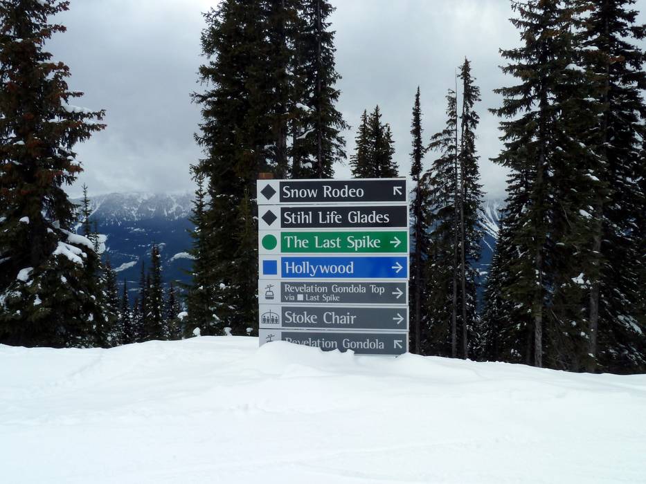 Jede Abfahrt im Skigebiet Revelstoke Mountain Resort ist mit Namen ausgeschildert. An den wichtigen Punkten findet man Pistenpläne und Informationen zum aktuellen Betriebsstatus. Man findet sich somit immer gut im Skigebiet zurecht.