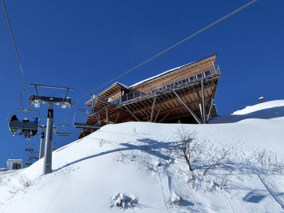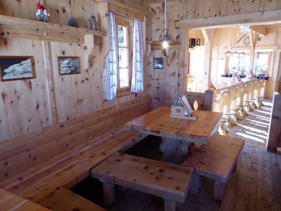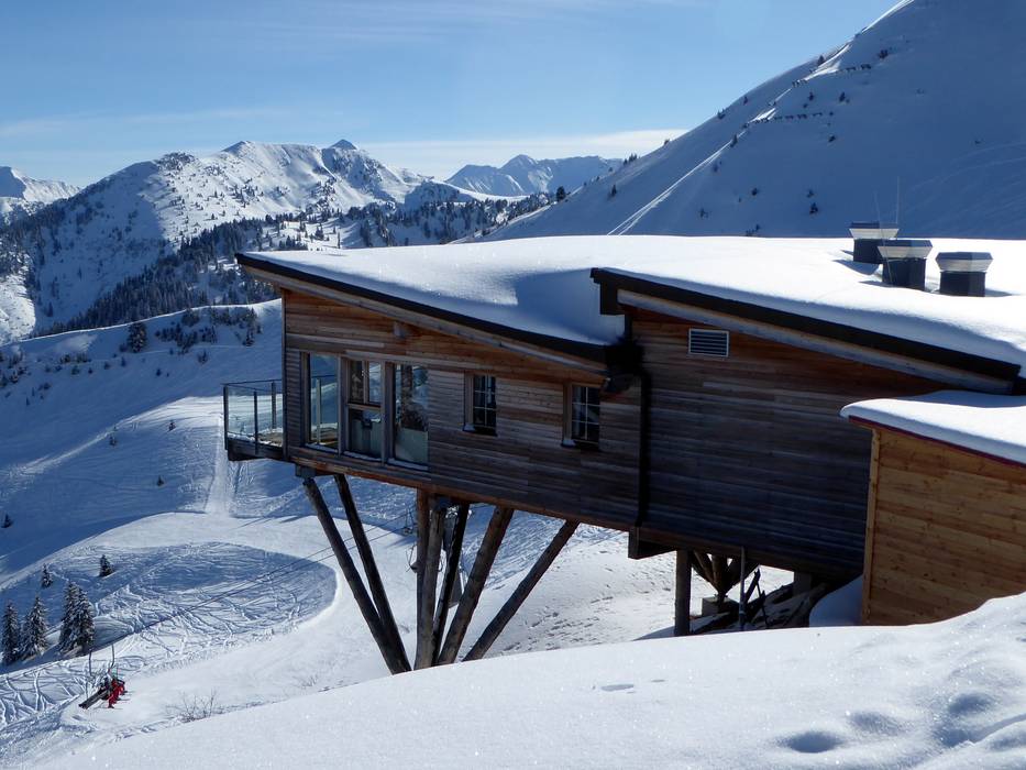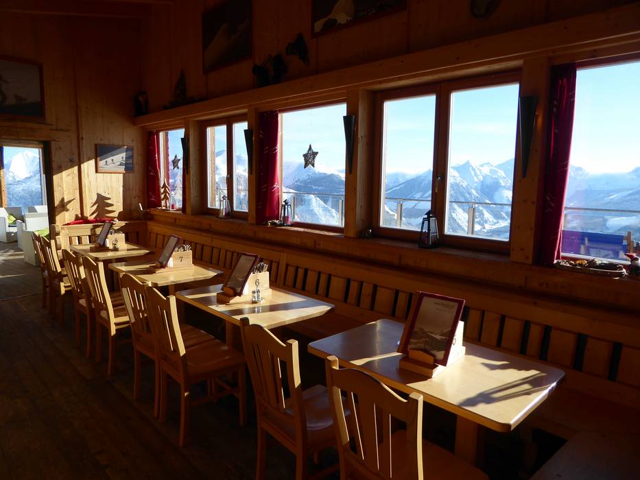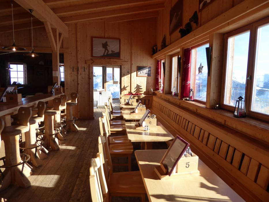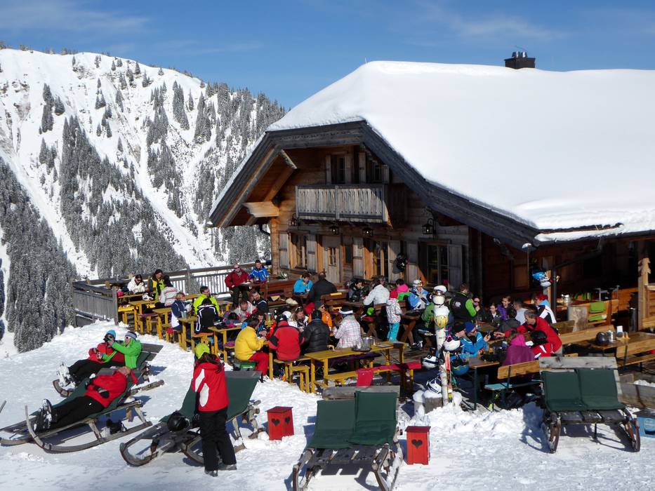 Die Sonnenterrasse mit Liegen bietet einen herrlichen Panoramablick übers Mörsbachtal. Die gemütliche Hütte garantiert einen gelungenen Einkehrschwung mit hausgemachten Hüttenspezialtäten und Après-Ski Hüttenzauber.