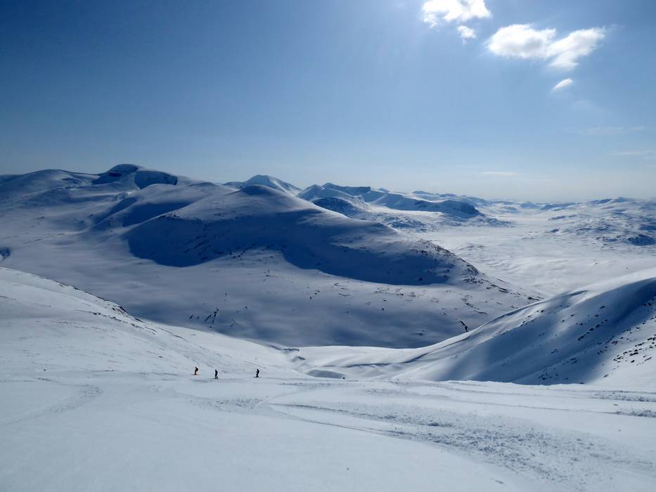 Für Könner stehen auf der Vorderseite in Riksgränsen eine anspruchsvolle Piste und viele Off-Piste-Möglichkeiten bereit. Teilweise findet man hier auch extremes Terrain mit Felsen und Kliffs. Man kann sogar einen Abstecher nach Norwegen im Tiefschnee machen. Auf der Rückseite in Richtung Katterjåkk gibt es ebenfalls viel freien Skiraum. Der Traum eines jeden Könners ist das Heliskiing in Riksgränsen. Helikoptertouren können relativ flexibel bei Mountain Guide Travel im Hotel Riksgränsen gebucht werden. Hier fliegt man in die Abisko-Alpen und kann endlos weite Tiefschneehänge genießen. Ein Guide führt die Wintersportler sicher zu den besten Hängen. Das Panorama ist grandios und bei gutem Wetter kann man bis zu den Lofoten blicken. Dem Heliskiing in Riksgränsen wurde 2021 von Skiresort die Auszeichnung "Bestes Heliskiing" verliehen. Es werden mit dem Helikopter u.a. folgende Berge in Schweden angeflogen: Vassitjakka 1360 m, Låkktatjocka 1440 m, Kårsatjokka 1450 m, Vouitasrita 1588 m, Nordalsfjäll 1051 m.