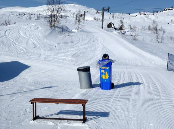 Das Skigebiet Riksgränsen macht einen sehr gepflegten Eindruck. Die Parkplätze und die Kassenbereiche sind sehr sauber. Im Skigebiet gibt es Mülleimer mit Mülltrennung. Auch die sanitären Anlagen sind in einem guten Zustand.