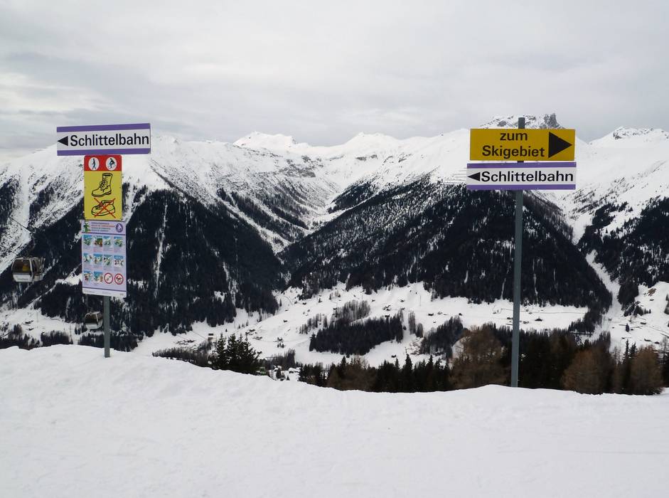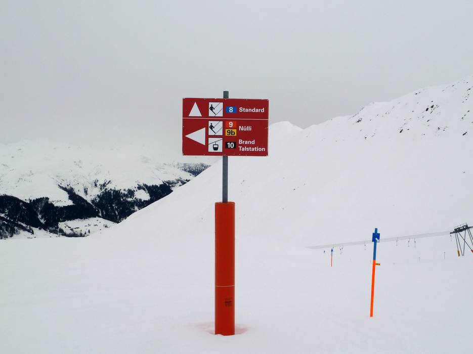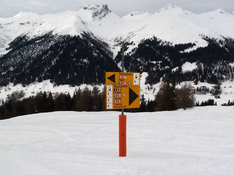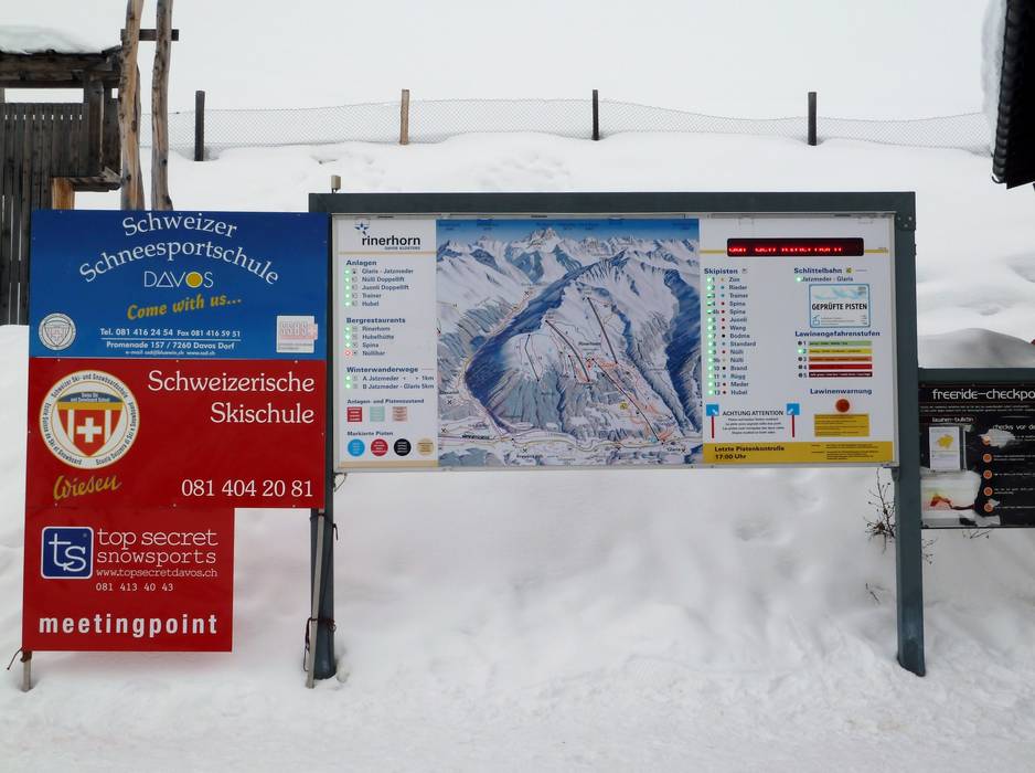 Orientierung (Pistenplan, Informationstafeln, Ausschilderung) und Sicherheit im Skigebiet Rinerhorn (Davos Klosters)