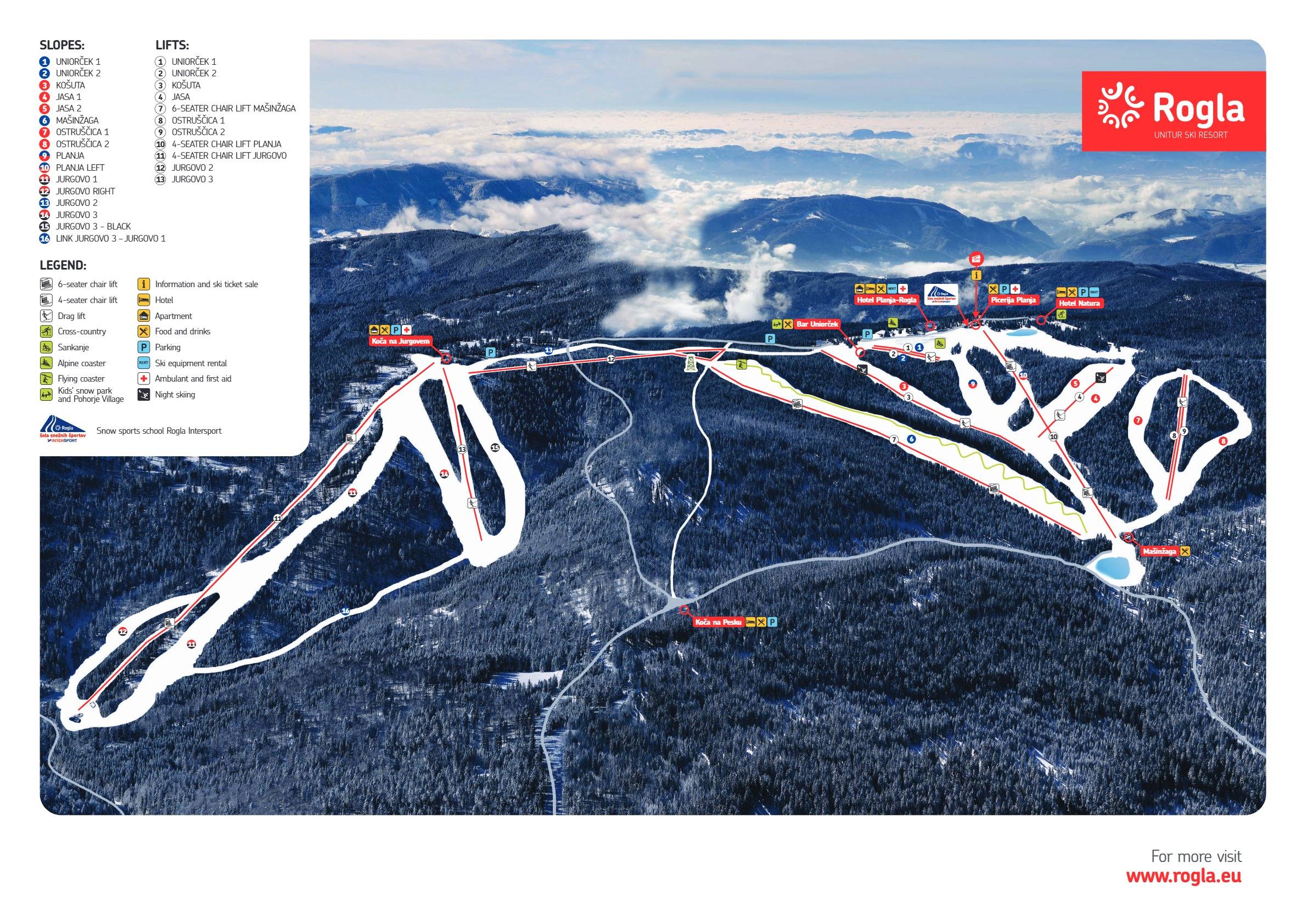 Rogla (0,1 km), Oplotnica (12 km), Zreče (16 km) Orte am Skigebiet